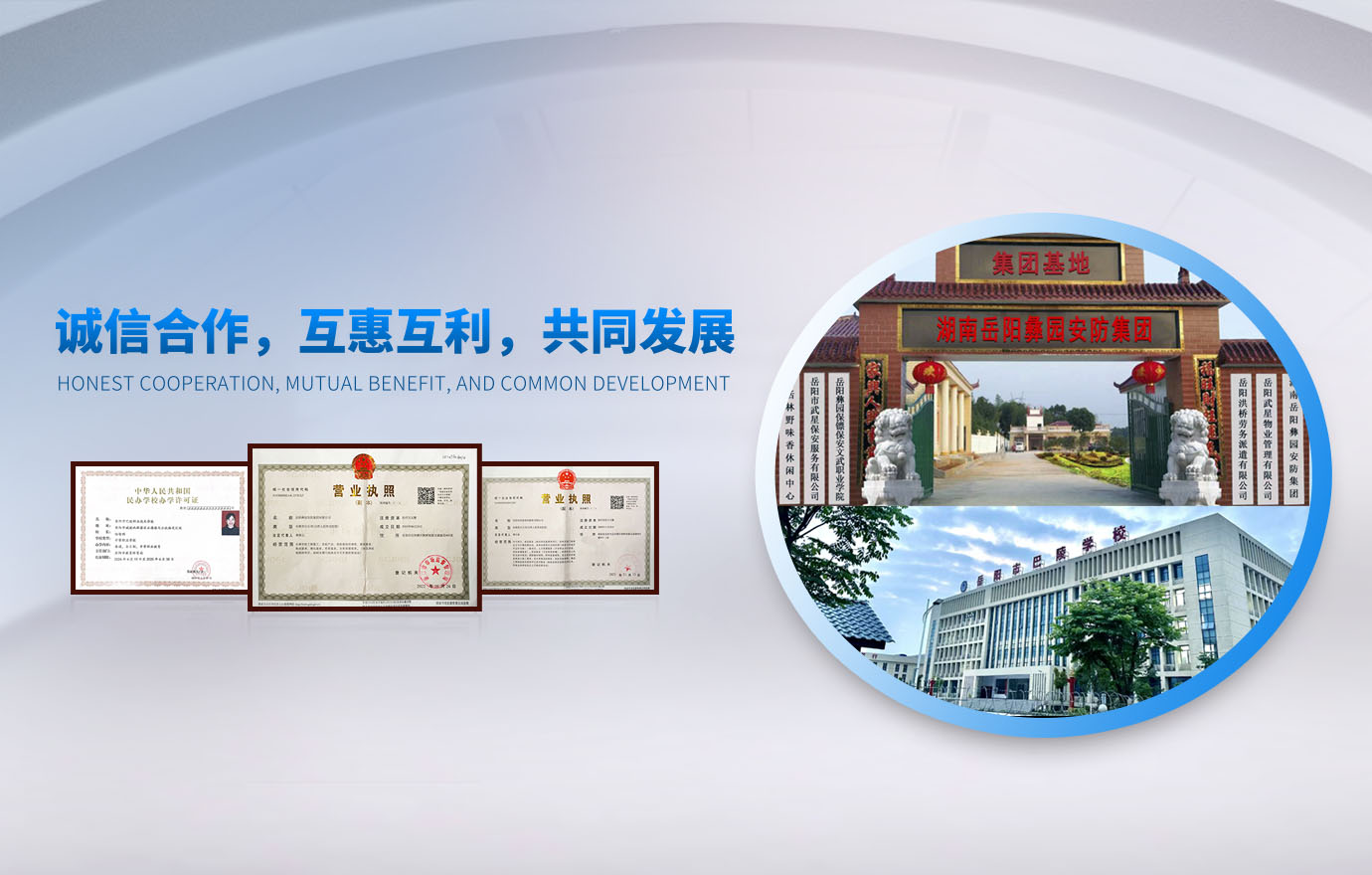 2017年6月正式成立了《岳陽(yáng)彝園安防集團(tuán)》,下設(shè)《武星保安公司》、《武星物業(yè)公司》、《洪橋勞務(wù)派遺公司》、《保鏢保安武術(shù)職業(yè)培訓(xùn)學(xué)?!返茸庸?/p>